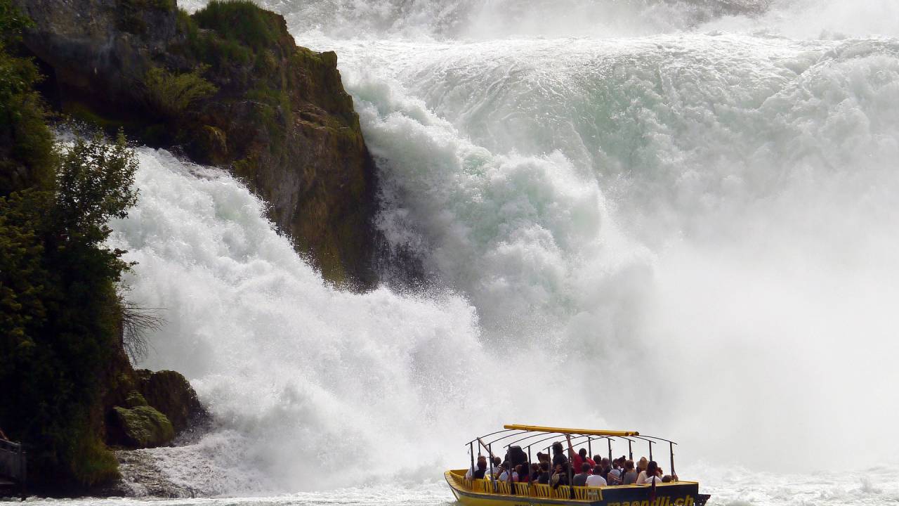 Beim größten Wasserfall in Europa stürzen auf einer Breite von 150 m pro Sekunde etwa 700 Kubikmeter Wasser in die Tiefe (siehe Bild).